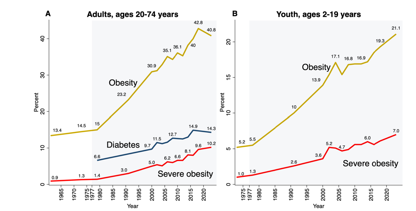 I grafici costruiti sui dati Nhanes mostrano che questa traiettoria è cresciuta lungo tutte le edizioni precedenti delle linee guida, dagli anni Ottanta a oggi.