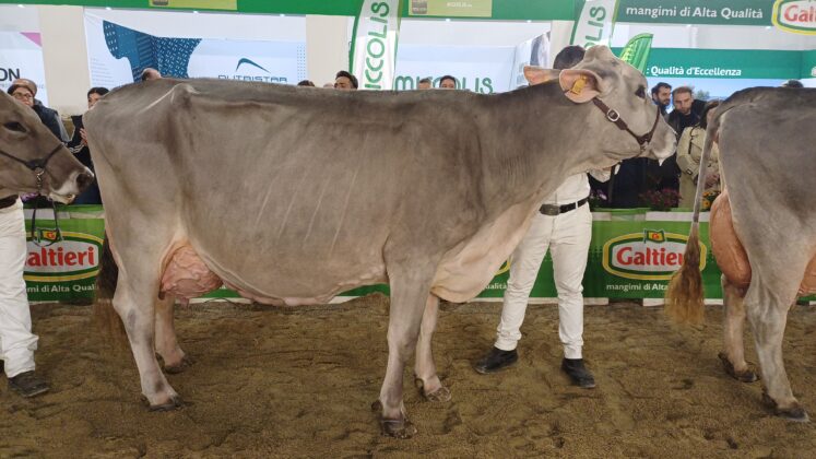 La menzione d’onore è toccata a Janik Roana dell’Azienda Turnone Domenico di Martina Franca (Ta), campionessa della categoria “Vacche quarto parto e oltre” e menzione d’onore vacche adulte. «È una vacca molto solida, ben impostata nel posteriore e negli arti, di grande espressività funzionale».