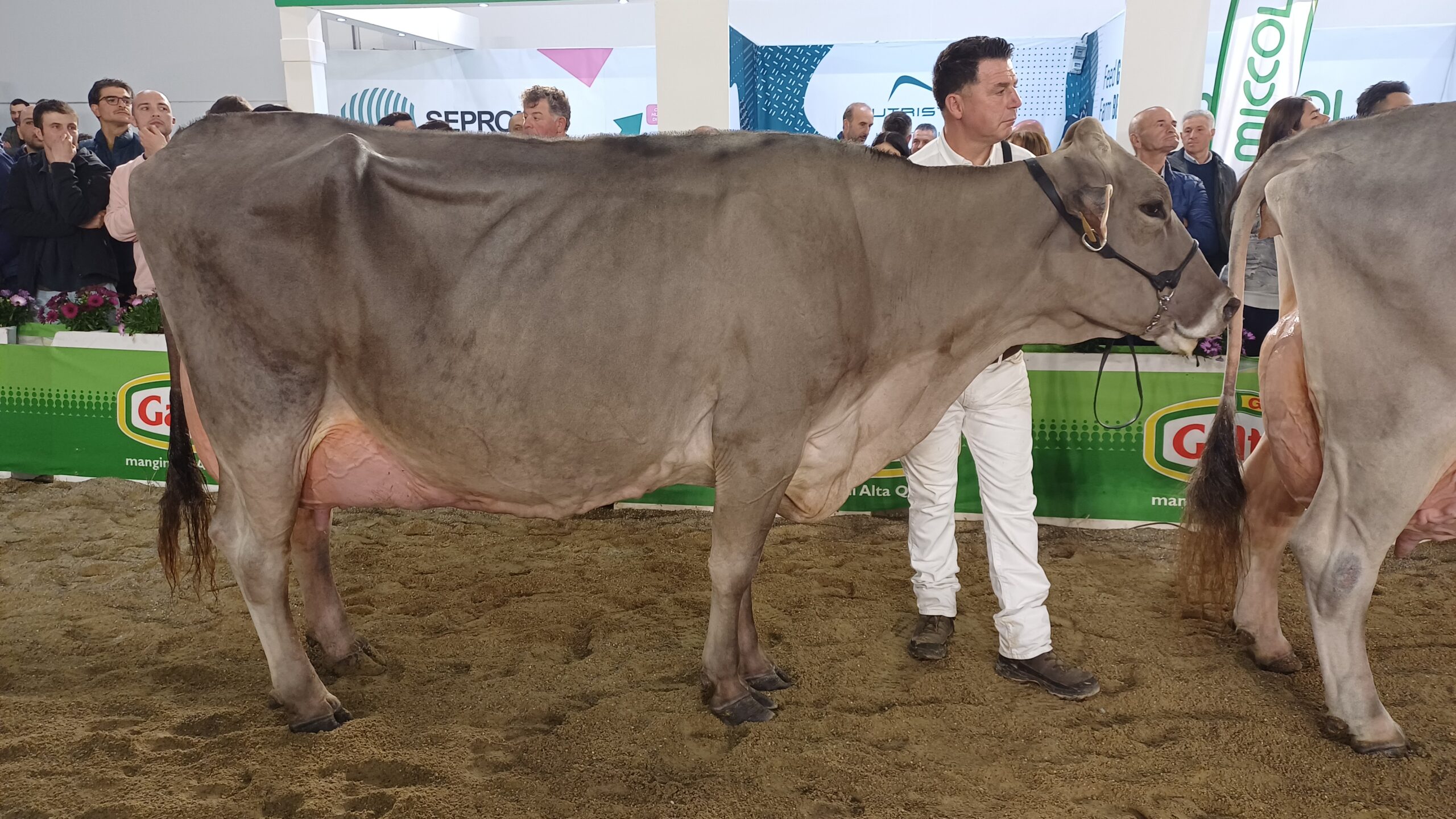 Inoltre l’ho trovata in ottime condizioni e in un eccezionale stato di forma, come peraltro la riserva e la menzione d’onore. Se incontro ottimi capi tendo sempre a far vincere le vacche adulte, perché queste hanno già dimostrato il meglio delle capacità funzionali e produttive della razza Bruna: e oggi ho trovato qua a Noci davvero delle vacche eccellenti, a cominciare proprio da Kam Arrow Miami, una vacca davvero strepitosa».